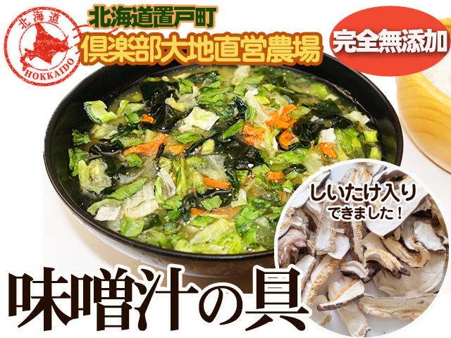 | 三陸産ワカメ、自然栽培大根(北海道訓子府産)、自然栽培人参(青森県産または北海道産)、自然農法ほうれん草(北海道訓子府産)、自然農法長ネギ(高知県産または北海道産)※味噌汁の具の中身は、シーズンごとに変わる場合がございます。アレルギーなどお持ちの方は注文時にお知らせください。。 |