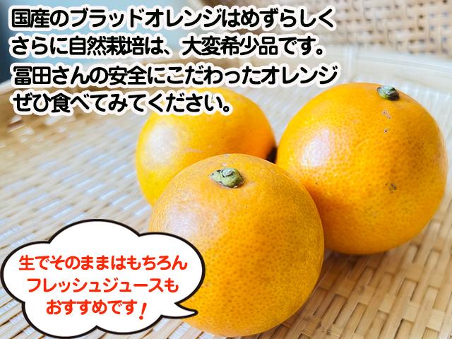 愛媛県伊予市の冨田農園さん栽培の自然栽培ブラッドオレンジ(タロッコ)です。