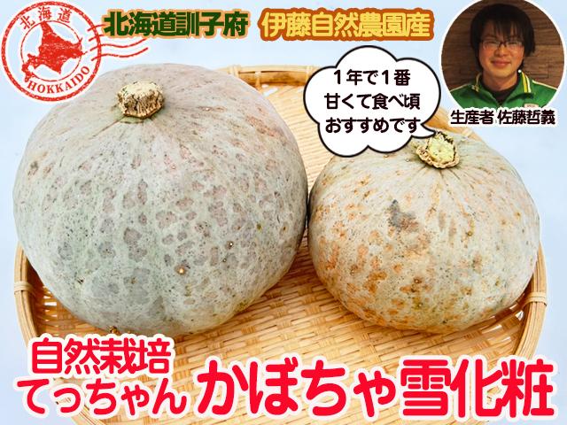 産地は、北海道訓子府町、伊藤農園 佐藤哲義さん(秀さんの息子さんで2代目)です。お父さんの意思を受け継ぎ、農薬や化学肥料・堆肥等、一切使用しない『無投入栽培かぼちゃ』を育てています。