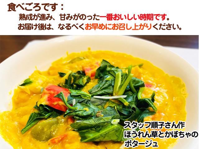 到着後は涼しい場所で保管してください。熟成かぼちゃです。お早めにお召し上がりください。