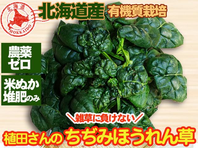 北海道訓子府町 植田農園さんの『農薬不使用・有機質農法ちぢみほうれん草』収穫になりました。