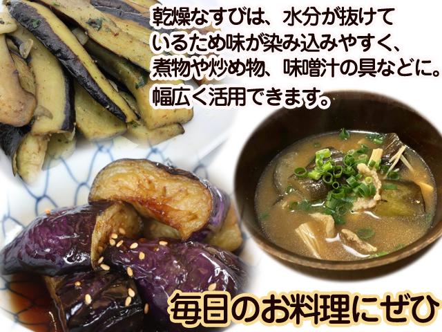 自然乾燥なので栄養もしっかり保たれて、長期間保存OK、いつでも安全ななすびをお召し上がりいただけます。