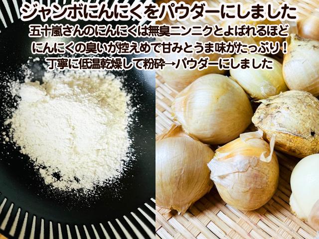 大切に育てた農薬不使用・無肥料・無たい肥のジャンボにんにくをじっくり低温乾燥して粉砕した無添加パウダーです。
