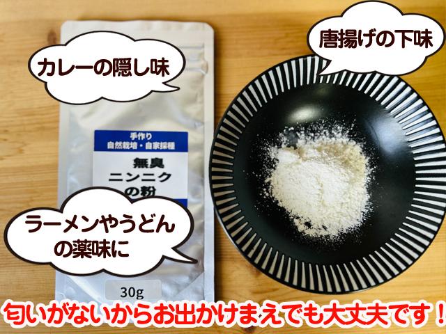 パウダーなら乾燥しているから保存にも便利です。いつでも自然栽培にんにくをご活用いただけますね。