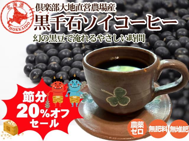 倶楽部大地の福澤順宣が自家採種を重ね、農薬・肥料・堆肥を一切使わない自然栽培で復活させた、貴重な黒千石を100%使用したソイコーヒーです。