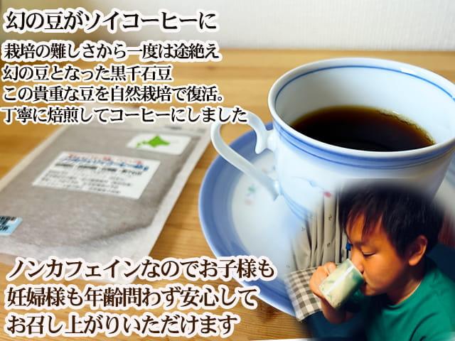 倶楽部大地の福澤順宣が自家採種を重ね、農薬・肥料・堆肥を一切使わない自然栽培で復活させた、貴重な黒千石を100%使用したソイコーヒーです。