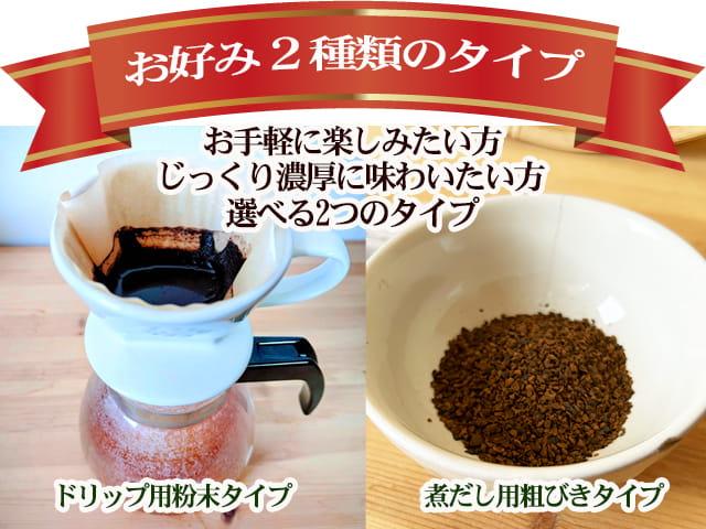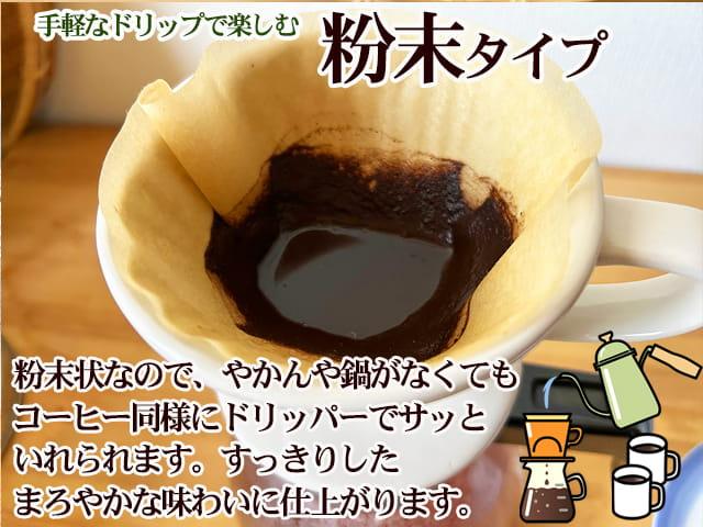 ドリッパーで手軽に淹れられる粉末タイプ。すっきりとした、まろやかな味わいが特長です。
