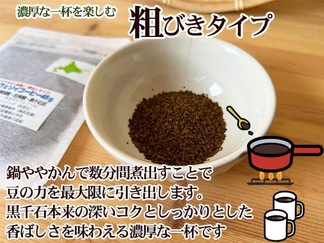 鍋ややかんで煮出すことで、黒千石の力をしっかり引き出します。深いコクと香ばしさを楽しめる濃厚な味わいです。※ドリップとしても使用できます。