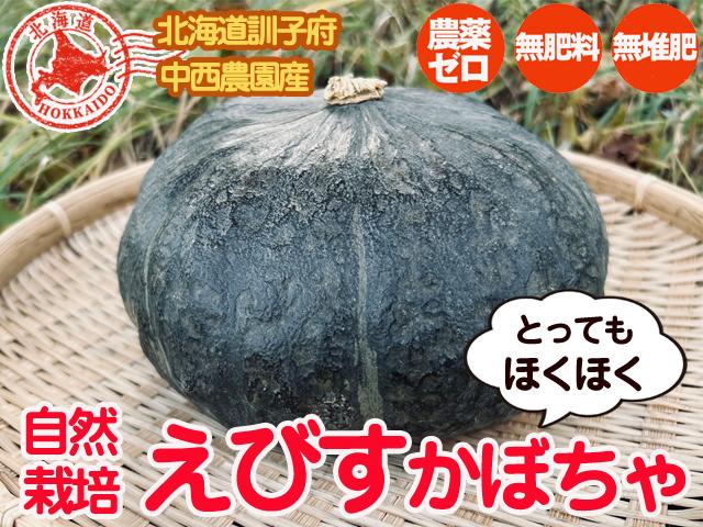 品種は、えびすかぼちゃ。生産者は、自然栽培ごぼうや長いもでおなじみの北海道訓子府町中西農園中西康二さん、智(さとし)さん親子です。