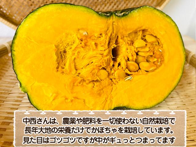 自然栽培で大地の栄養だけでそだったので、体にすぅっとしみこむような、かぼちゃの豊富な栄養がじんわり体にしみこんでいくようです。