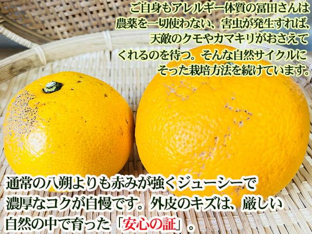 農薬や肥料を一切使わず、自然の力だけで育ったこの八朔は、通常の八朔よりも赤みが強く、