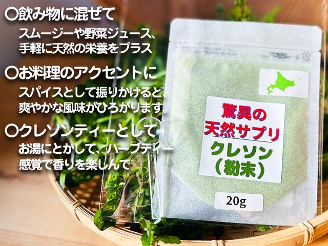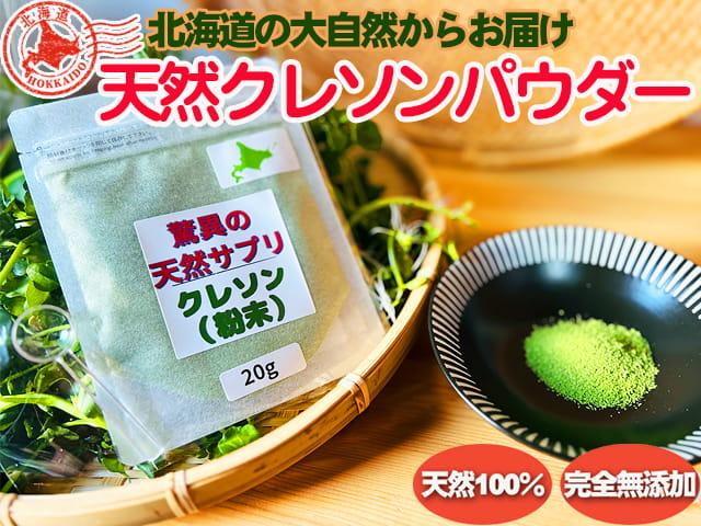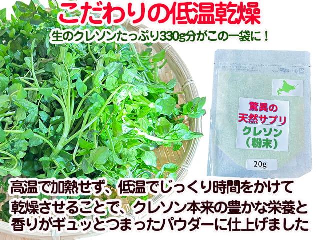 【十勝・足寄産】天然クレソンパウダー20g(専用スプーン付) 生の天然クレソン330g分をこの一袋に凝縮しました。
